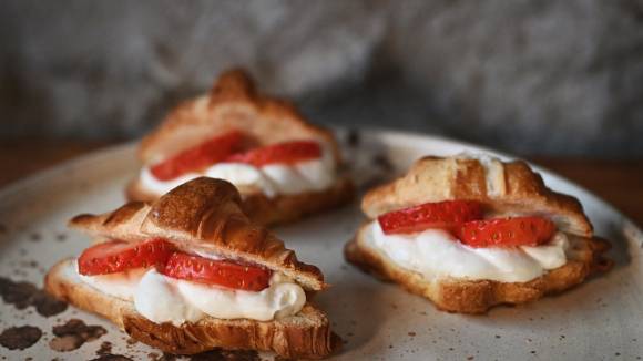 Mini croissant s pudinkem a jahodami